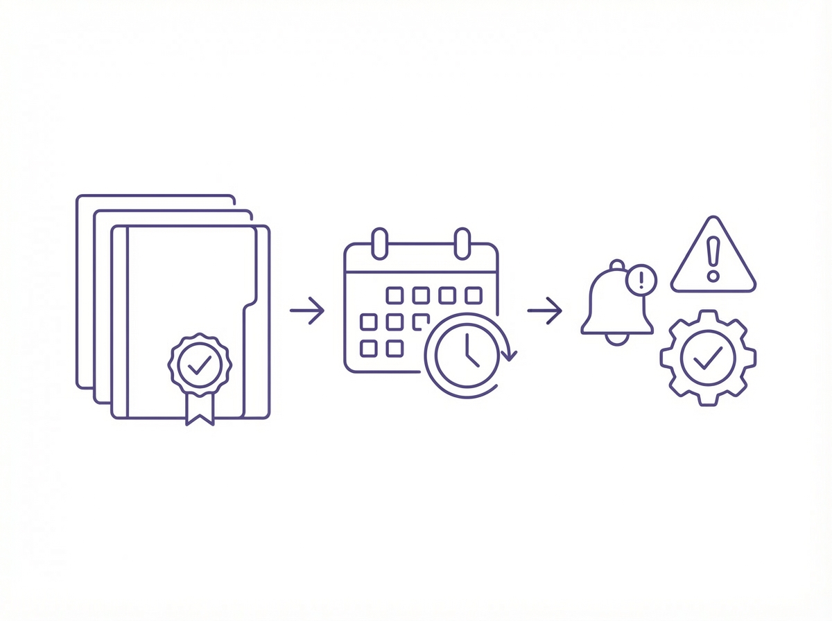 Certificates expire. Licences lapse. The dossier monitors continuously and alerts you when something needs attention — before it becomes a problem.